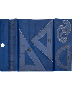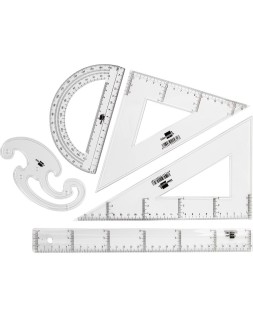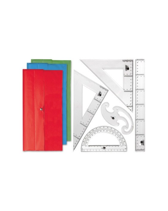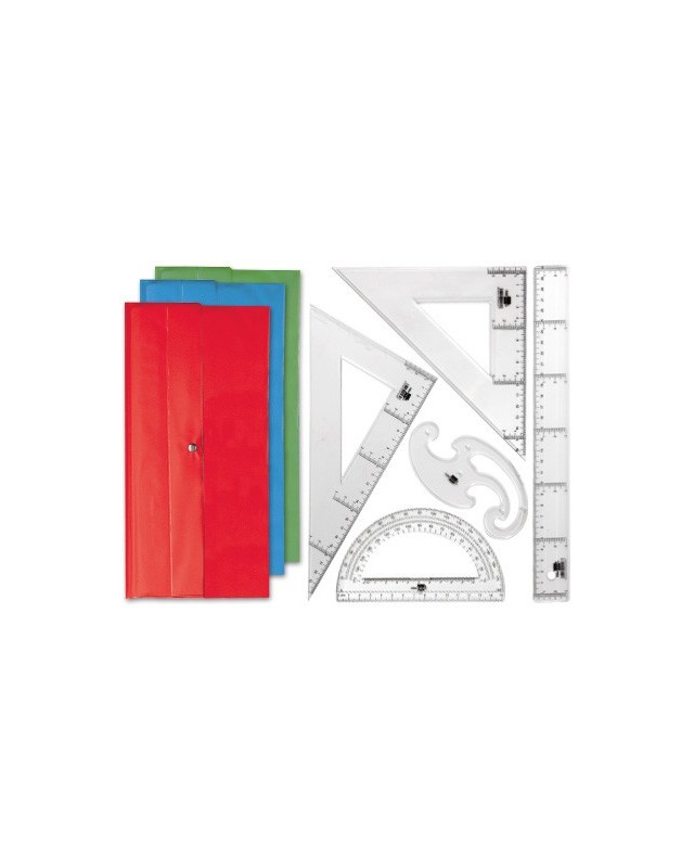 Juego escuadra y cartabon 25cm regla 30cm semicirculo 15cm y plantilla de curvas liderpapelen petaca opaca color verde