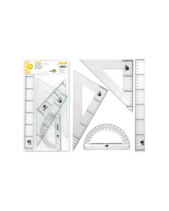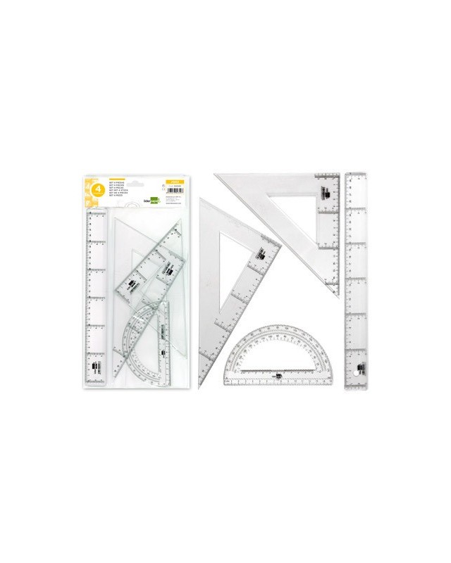 Juego escuadra y cartabon 25cm regla 30cm y semicirculo 15cm liderpapel en petaca incolora