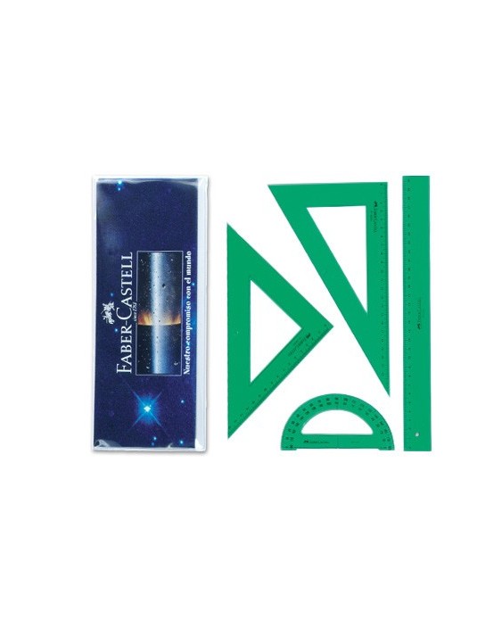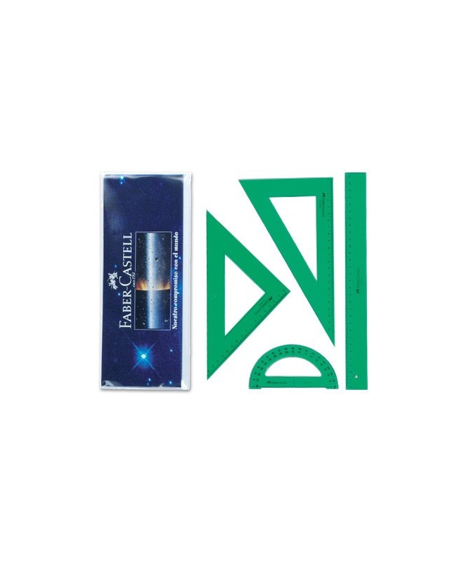 Juego escuadra y cartabon petaca faber castell metacrilato color verde