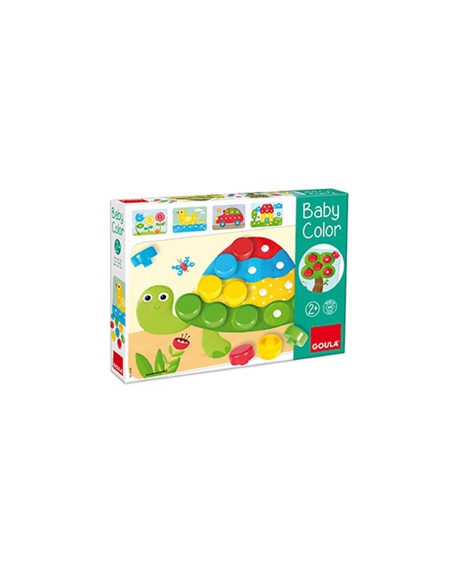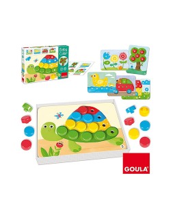 Divertido mosaico de madera para aprender los colores encajando correctamente los pivotes en cada lámina. Pivotes muy gruesos para niños pequeños. Láminas progresivas de menos a más dificultad. Ilustraciones llamativas por su colorido. Aprendizaje de los colores básicos como son el azul, amarillo, rojo y verde. Desarrolla la habilidad manual ojo/mano, la percepción visual y la motricidad fina. 6 láminas de cartón grueso semitroqueladas, 20 pivotes en madera de colores y 1 lámina de ejemplos. A partir de 2 años. Medidas: 22 x 30 x 5 cm.