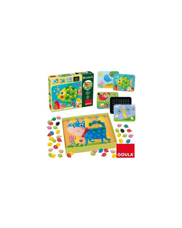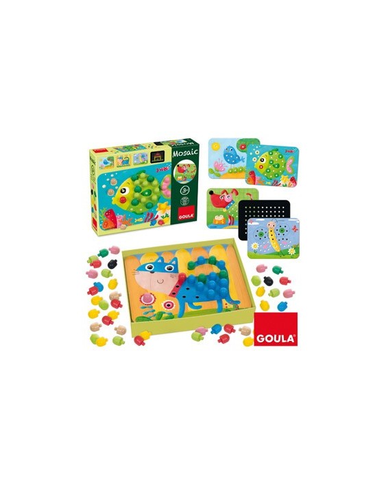 Divertido juego para completar las láminas de animalitos, colocando los pivotes de colores en su sitio. Láminas de diferentes dificultades. Desarrolla la coordinación ojo/mano, estimula la creatividad y ayuda a desarrollar la motricidad fina. Contiene 60 pivotes de madera, 5 láminas de cartón, 1 lámina en negro, hoja de ejemplos y caja. A partir de 3 años. Medidas: 33,5 x 20 x 2,5 cm.