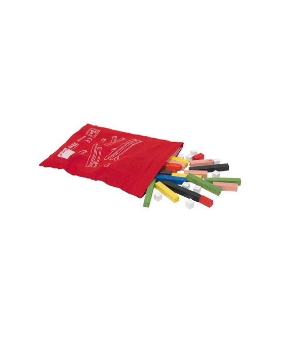 Juego para la comprensión del concepto y descomposición del número y operaciones matemáticas básicas. Desarrollo de la memoria. Desarrolla la creatividad y experimentación. Alto nivel educativo. Bolsa de tela para guardar las 55 regletas de colores. Guía pedagógica y de ejemplos. A partir de 3 años. Medidas: 15 x 15 x 7 cm.