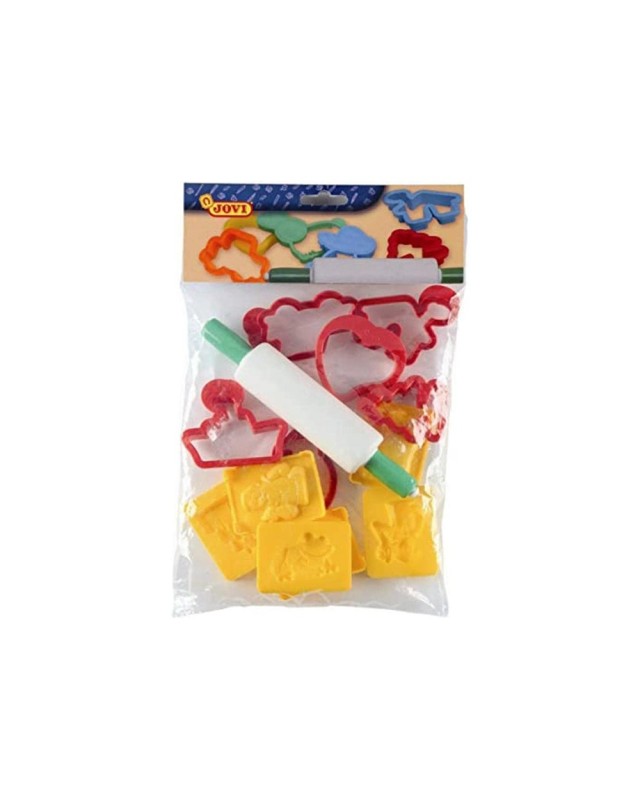 Juego jovi rodillo para plastilina + 12 moldes formas surtidas