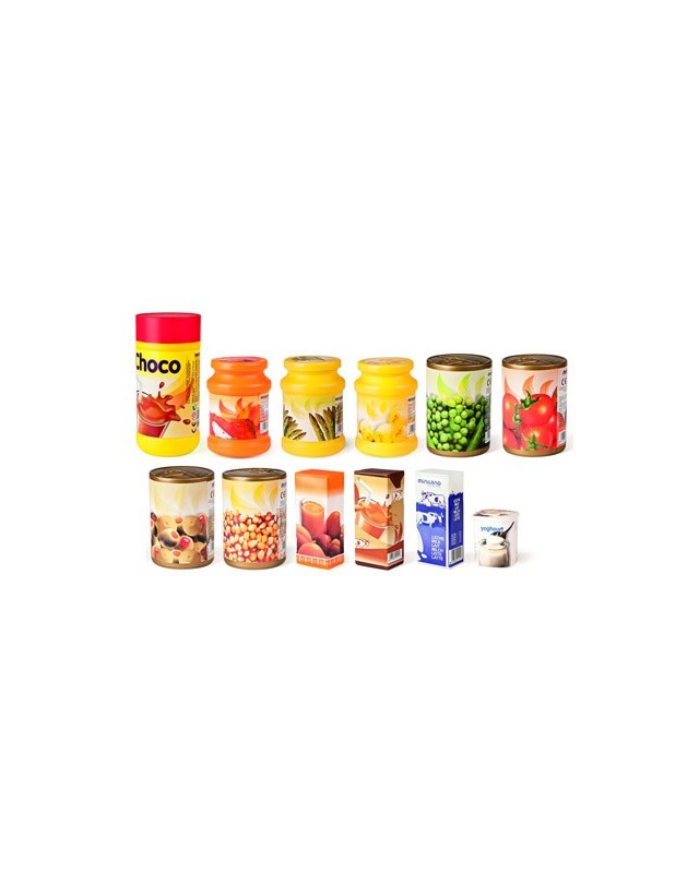 Juego miniland alimentos envasados 12 piezas