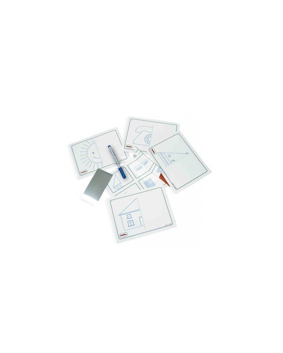Juego tarjetas reutilizables henbea imagina y completa plastico flexible con ilustraciones 21x15 cm