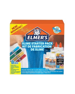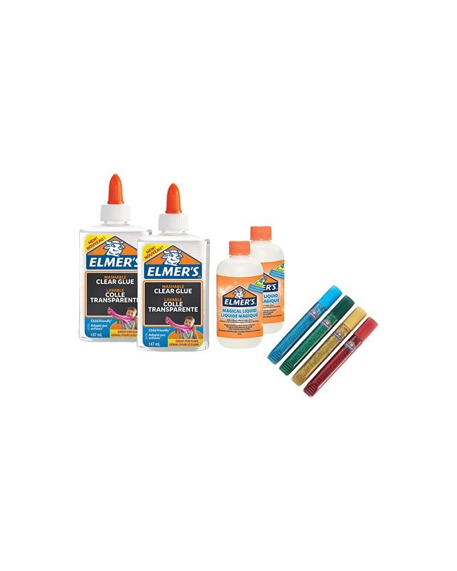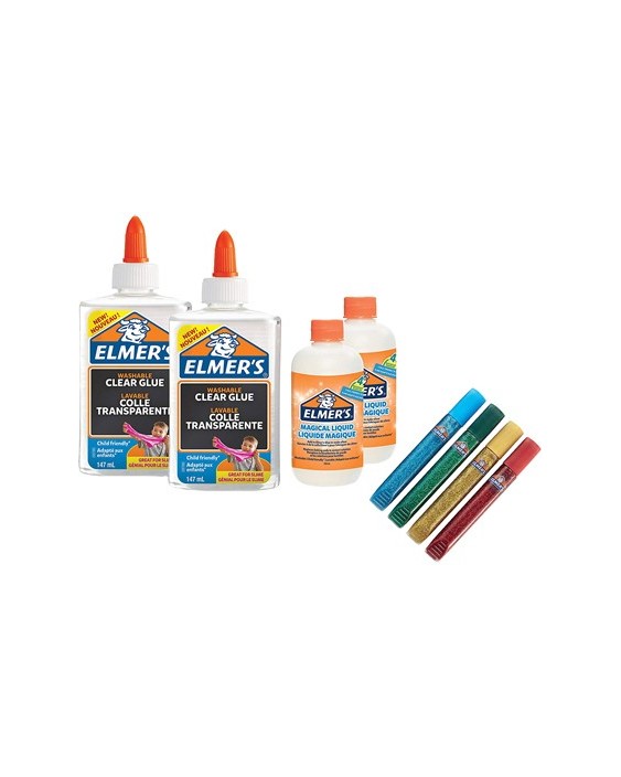 Kit elmers fabricacion slime con 2 botes cola transparente + 2 botes liquido magico + 4 botes purpurina colores
