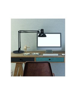 Un clásico del diseño con una convincente relación calidad-precio. Potentey de eficacia probada, ajustable con flexibilidad en todas las direccione s. Lámpara profesional de oficina, alta calidad de luz. Compatible con Smart Home con bombilla (casquillo E27) a juego, bombilla no incluida. Reflector para un aprovechamiento óptimo de la luz. Garantizado: consumo cero con el interruptor apagado. Concepto técnico de seguridad Made by MAUL. Extremadamente robusta: la pesada base permite extender el largo brazo doble yevita que la lámpara vuelque. Bombilla sustituible. Envase reciclable. Pi e: base. Material: Cabezal: metal - Brazo: metal - Soporte de fijación:metal. Medidas: Altura: 47 cm - Cabezal: diametro 17 cm - Brazo: longitud inferior 35 cm, longitud superior 35 cm - Pie: b