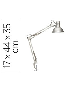 Un clásico del diseño con una convincente relación calidad-precio. Potentey de eficacia probada, ajustable con flexibilidad en todas las direccione s. Lámpara profesional de oficina, alta calidad de luz. Compatible con Smart Home con bombilla (casquillo E27) a juego, bombilla no incluida. Reflector para un aprovechamiento óptimo de la luz. Garantizado: consumo cero con el interruptor apagado. Concepto técnico de seguridad Made by MAUL. Sin límite de extensión del brazo doble largo. Pie de apriete estable, anchurade pinza hasta 5,5 cm. Bombilla sustituible. Envase reciclable. Pie: Pinz a. Material:Cabezal: metal - Brazo: metal - Soporte de fijación:metal. Medidas:Altura: 44 cm - Cabezal: diametro 17 cm - Brazo: longitud inferior 35cm, longitud superior 35 cm - Pie: anchura d