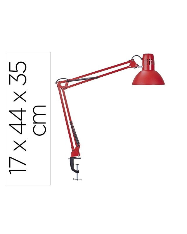 Un clásico del diseño con una convincente relación calidad-precio. Potentey de eficacia probada, ajustable con flexibilidad en todas las direccione s. Lámpara profesional de oficina, alta calidad de luz. Compatible con Smart Home con bombilla (casquillo E27) a juego, bombilla no incluida. Reflector para un aprovechamiento óptimo de la luz. Garantizado: consumo cero con el interruptor apagado. Concepto técnico de seguridad Made by MAUL. Sin límite de extensión del brazo doble largo. Pie de apriete estable, anchurade pinza hasta 5,5 cm. Bombilla sustituible. Envase reciclable. Pie: Pinz a. Material:Cabezal: metal - Brazo: metal - Soporte de fijación:metal. Medidas: Altura: 44 cm - Cabezal: diametro 17 cm - Brazo: longitud inferior 35 cm, longitud superior 35 cm - Pie: anchura