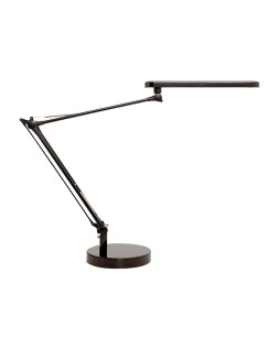 Equipada con led integrado de 5,6W de potencia con una duración de 40 años y 460 lúmenes. Lámpara de oficina con buena eficiencia luminosa: 109 lm/ W. Consume dos veces menos que una lámpara fluorescente. Equipada con un difusor que permite un mejor reparto de la luz. Su brazo tiene 3 articulaciones. Gira 360 sobre la base y el cabezal gira en todas direcciones. Consumo energético 4,2 kW cada 1000 horas. El interruptor está en el cabezal. Medidas: 190 x 580 + 460 x 290 mm.