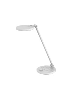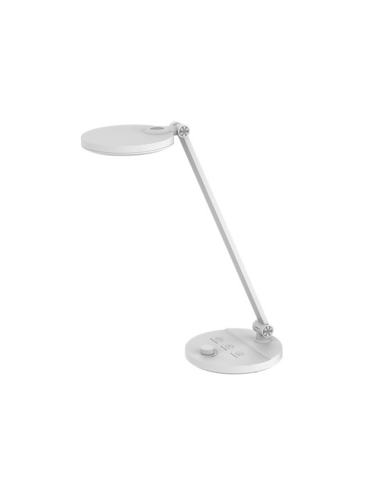 Lámpara de sobremesa fabricada en ABS con acabado mate. Dispone de un interruptor para encender el aparato y regular la intensidad de la luz. Cabeza y brazo orientable. Tira de 80 LED, flujos luminosos 1000 lux. CCT: 3000K-6500K. Lumen: 500 Lm. Potencia 7 W. Medidas: 165 x 165 x 437 mm.