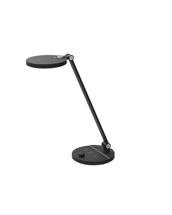 Lámpara de sobremesa fabricada en ABS con acabado mate. Dispone de un interruptor para encender el aparato y regular la intensidad de la luz. Cabeza y brazo orientable. Tira de 80 LED, flujos luminosos 1000 lux. CCT: 3000K-6500K. Lumen : 500Lm. Potencia 7 W. Medidas : 165 x 165 x 437 mm.