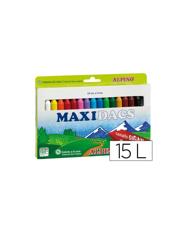 Ceras de tamaño gigante indicadas para los más pequeños. Colores vivos y cubrientes, son ideales para pintar en casa o en el colegio. De gran duración gracias a su tamaño. Con etiqueta alrededor para que los niños no se manchen. Altura de la cera: 120 mm. Diámetro de la cera: 14 mm. La caja de 15 lápices.