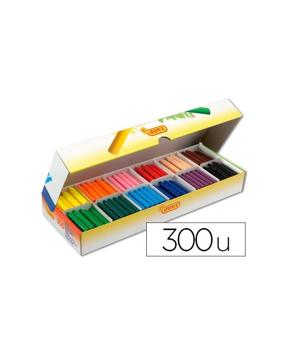 Pequeñas y gruesas, estas ceras son aptas para todas las edades. No manchan, no huelen y no se rompen si se caen. Resbalan muy bien sobre el papel. Son muy agradables de rayar y sacarles punta. Colores luminosos. 25 lápices por 12 colores. La caja de 300 lápices.