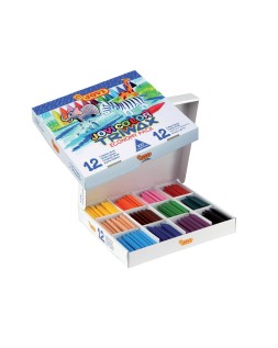 Ceras triangulares de colores vivos y luminosos. Su diseño ergonómico permite que se adapten perfectamente a la mano del niño y facilitan la preescritura. No manchan. Ideales para uso escolar. 25 lápices por 12 colores. Medidas de la cera: Ø 12 mm x 82 mm. La caja de 300 lápices.