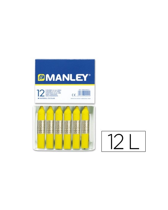 Lapices cera manley unicolor amarillo limon n.2 caja de 12 unidades