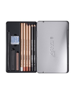 Lapices lyra rembrandt monocromo con accesorios para esbozos caja metalica de 11 unidades