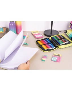 Plumier escolar milan coleccion sunset doble cremallera con accesorios color turquesa 198x143x40 mm