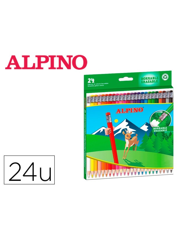 Lapices de colores alpino borrable caja de 24 unidades colores surtidos