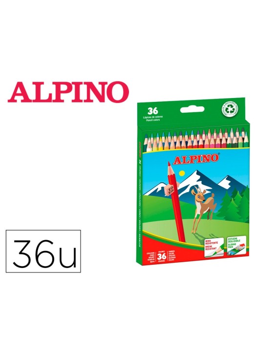 Lapices de colores alpino caja 36 unidades colores surtidos largos