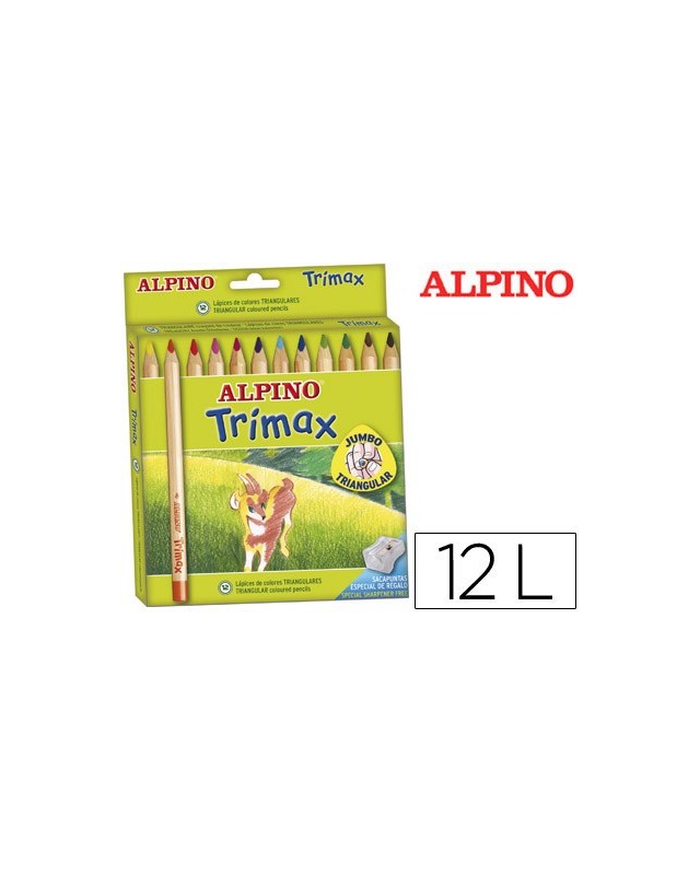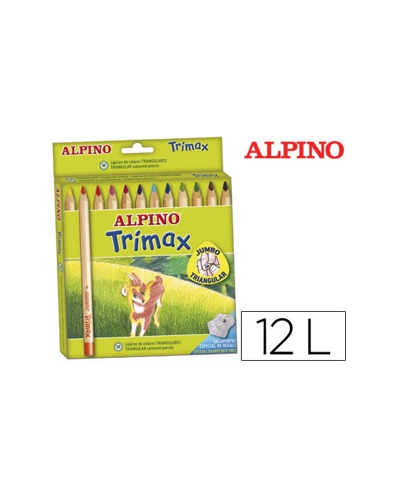 Maxilápices para aprender a dibujar. Forma triangular que se adapta perfectamente a los dedos del niño proporcionando una escritura firme y correcta. Mina gruesa de 5,4 mm de diámetro, resistente a la rotura. Altura del lápiz: 175 mm. Diámetro del lápiz: 10 mm. Diámetro de la mina: 5 mm. La caja de 12 lápices.