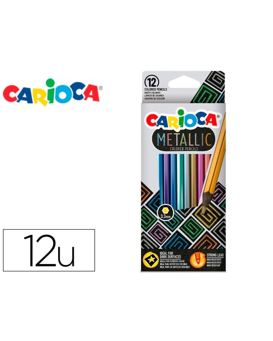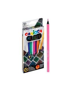Lapices de colores carioca metallic hexagonal mina 3,3 mm caja de 12 colores surtidos