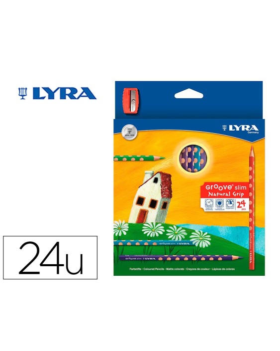 Lapices de colores lyra groove slim triangular minas de 3,3 mm caja de 24 colores + sacapuntas