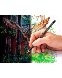 Lápices de color de diseño hexagonal. Mina extra suave para una espectacular capacidad de cobertura. Perfectos para conseguir colores luminosos sobre papel blanco y negro . Fabricados con madera certificada PEFC, procedente de bosques de gestión sostenible. Estuche de metal con 12 lápices colores surtidos.
