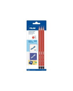 Lapices de grafito milan hexagonal hb + goma 430 + afilalapiz blister de 3 unidades