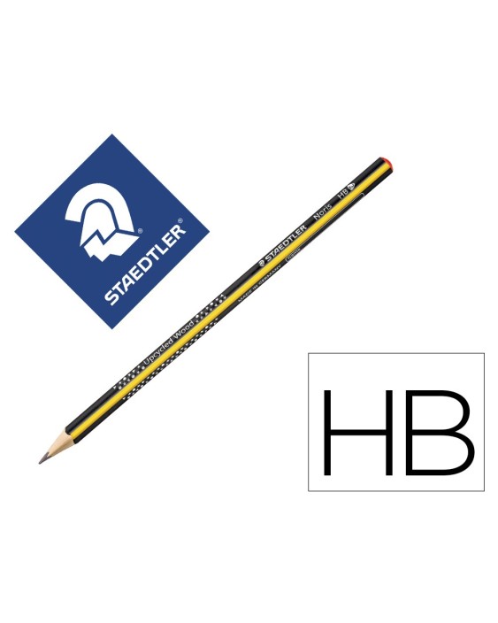 Lápiz de grafito de diseño triangular, fabricado en material ecológico WOPEX. Dureza HB. Cuerpo a rayas amarillas y negras con diseño de estrellas. Superficie suave y alta resistencia a la rotura. Fabricado con madera procedente de bosques de Alemania. Caja con 12 lápices.
