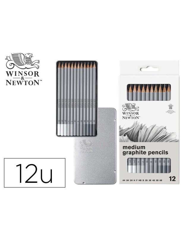 Lapices de grafito medium winsor&newton studio coleccion caja metalica con 12 unidades graduaciones surtidas