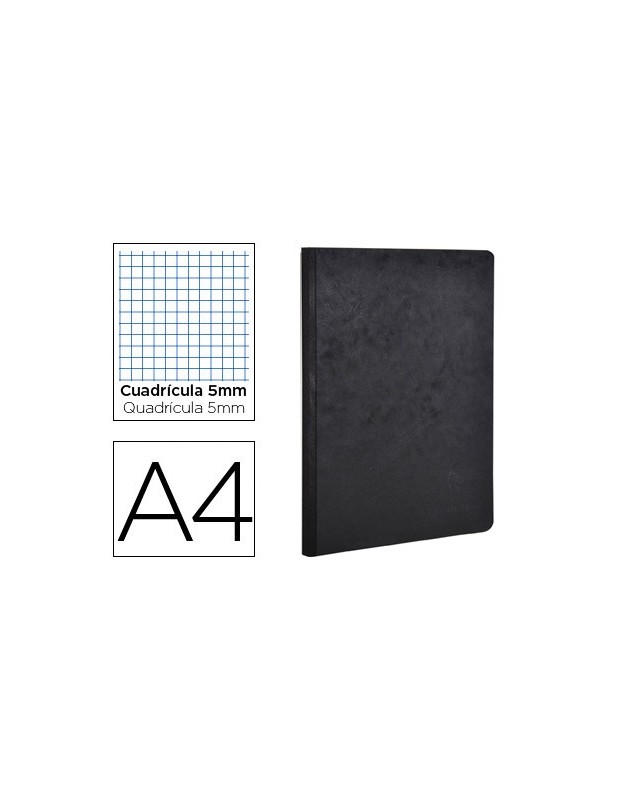 Libreta age-bag tapa cartulina lomo cosido cuadro 5 mm 96 hojas color negro 210x297 mm