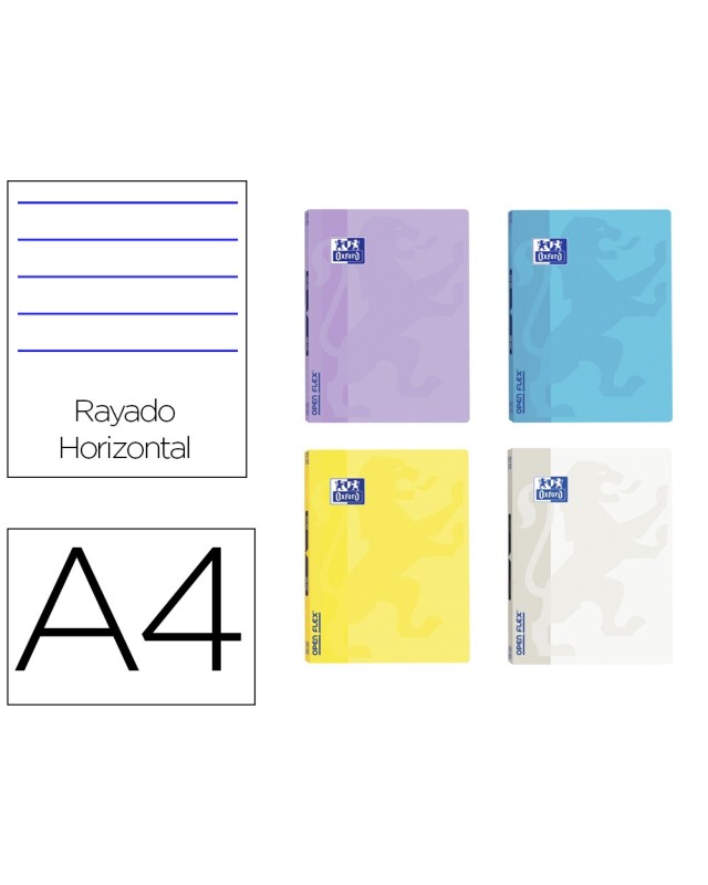 Libreta grapada oxford openflex tapa plastico din a4 48 hojas horizontal colores pastel surtidos