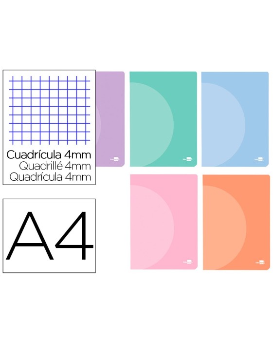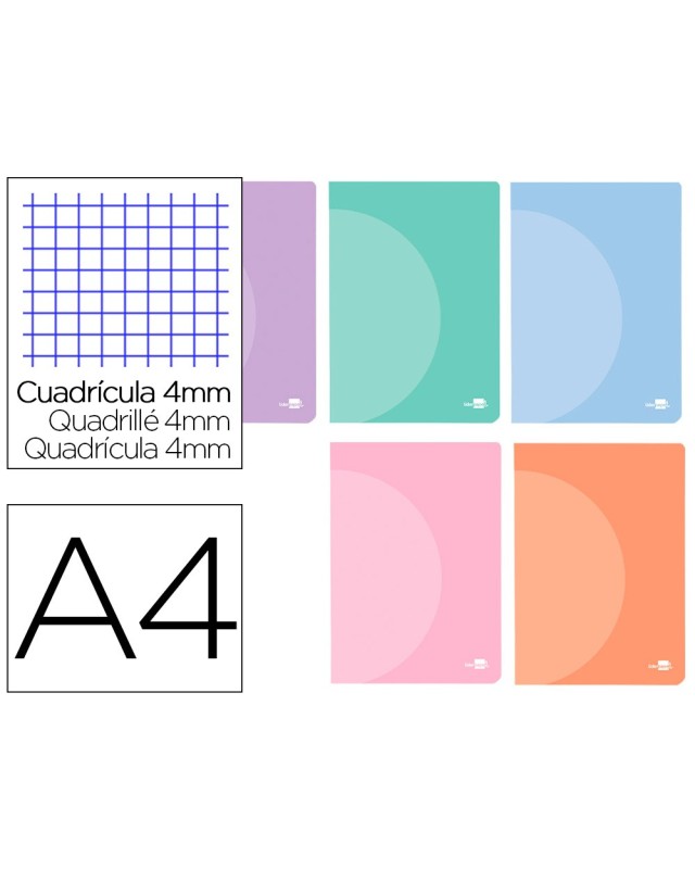 Libreta liderpapel 360 tapa de plastico a4 48 hojas 90g/m2 cuadro 4mm con margen colores pastel surtidos