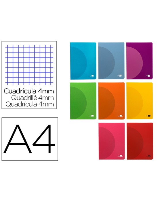 Libreta liderpapel 360 tapa de plastico a4 48 hojas 90g/m2 cuadro 4mm con margen colores surtidos