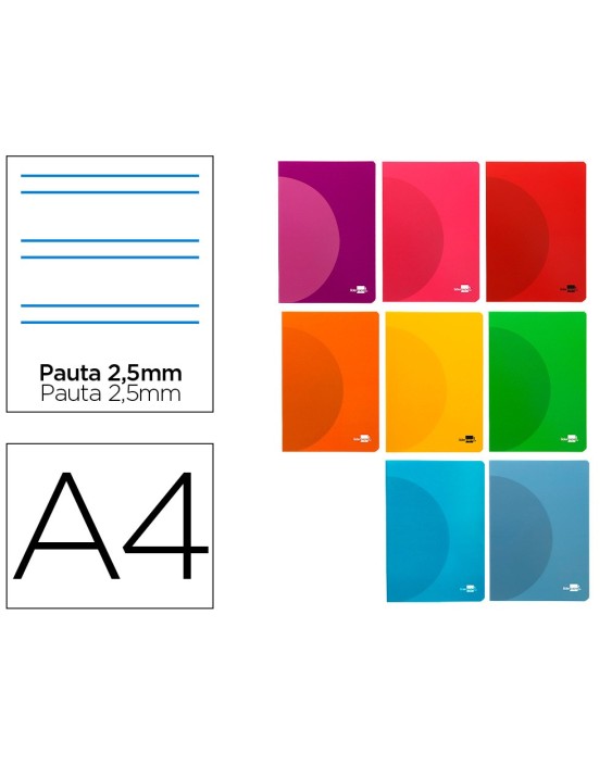 Libreta liderpapel 360 tapa de plastico a4 48 hojas 90g/m2 pauta 5 2,5mm con margen colores surtidos