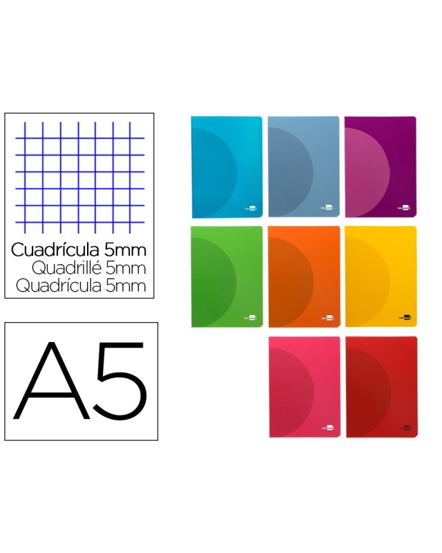 Libreta liderpapel 360 tapa de plastico a5 48 hojas 90g/m2 5mm con doble margen colores surtidos