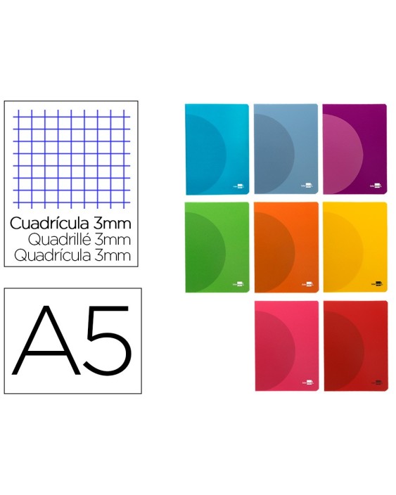 Libreta liderpapel 360 tapa de plastico a5 48 hojas 90g/m2 cuadro 3mm con margen colores surtidos