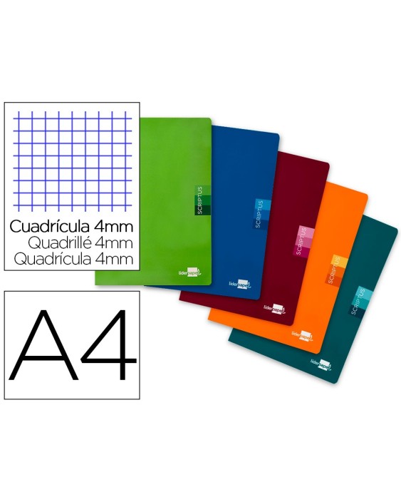 Libreta liderpapel scriptus a4 48 hojas 90g/m2 cuadro 4mm con margen