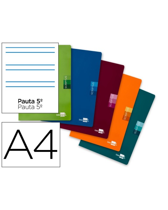 Libreta liderpapel scriptus a4 48 hojas 90g/m2 rayado montessori 5mm con margen colores surtidos
