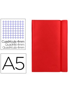 Libreta liderpapel simil piel a5 120 hojas 70g/m2 cuadro 4mm sin margen rojo