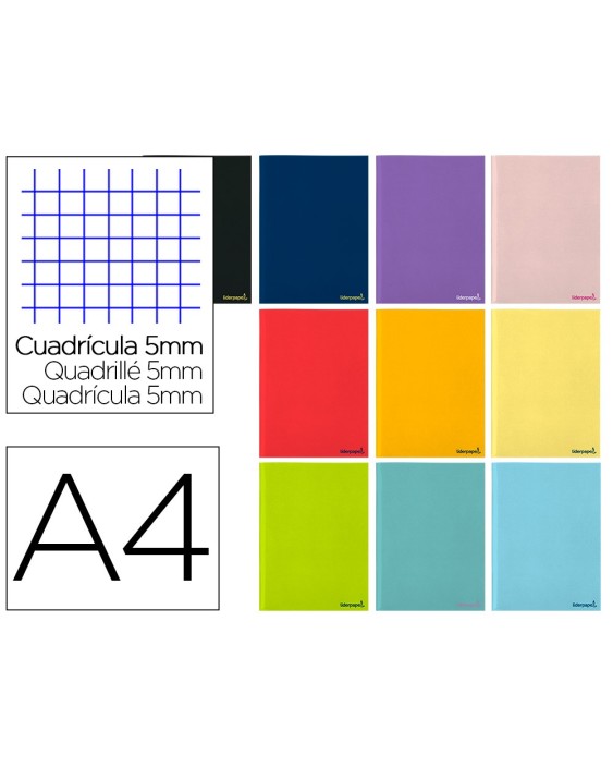 Libreta liderpapel smart a4 tapa blanda 80 hojas 60g/m2 cuadro 5 mm con margen colores surtidos