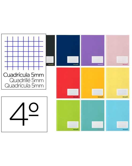 Libreta liderpapel smart a5 80 hojas 60 g/m2 cuadro 5mm con margen colores surtidos tapa blanda