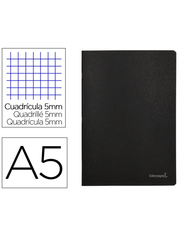 Libreta liderpapel tapa negra a5 80 hojas 60g/m2 cuadro 5mm con doble margen