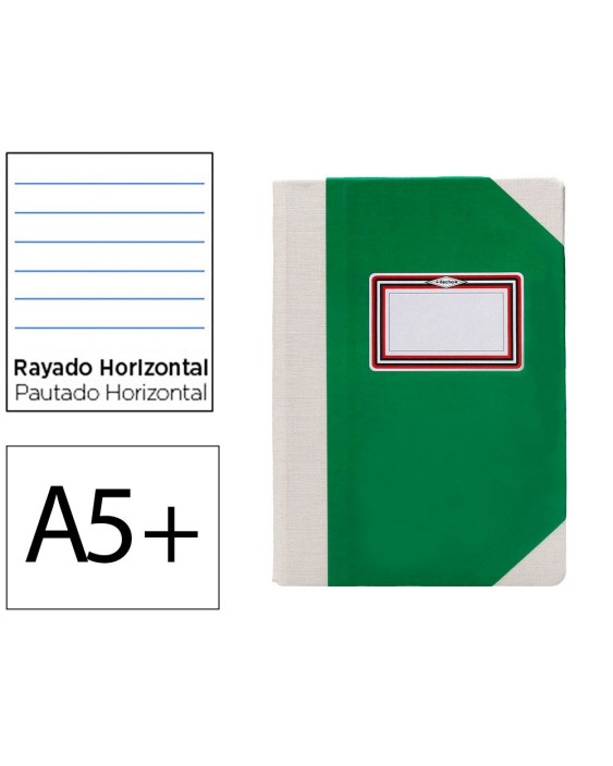 Libro cartone cosido fernandes flecha din a5+ rayado horizontal 50 hojas 100 gr verde