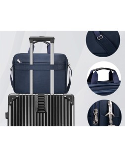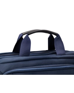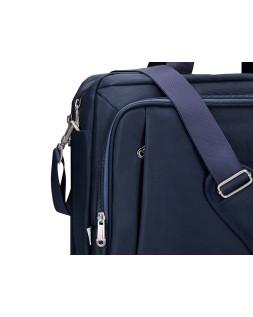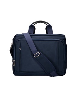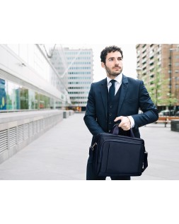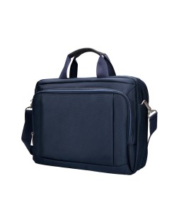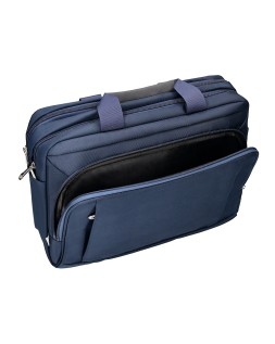 Maletín para portátil, práctico y ligero fabricado en poliéster. Tiene un bolsillo exterior con compartimento para bolígrafos y tres compartimentos interiores. Uno de los compartimentos interiores está acolchado con un cierre de velcro para el portátil. 1 asa de mano. Medidas: 390 x 310 x 120 mm.