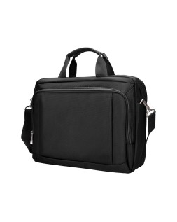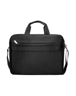 Maletín para portátil, práctico y ligero fabricado en poliéster. Tiene un bolsillo exterior con compartimento para bolígrafos y tres compartimentos interiores. Uno de los compartimentos interiores está acolchado con un cierre de velcro para el portátil. 1 asa de mano. Medidas: 390 x 310 x 120 mm.