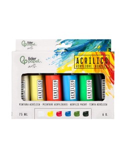 Pintura acrilica liderpapel caja de 6 tubos de plastico de 75 ml colores basicos