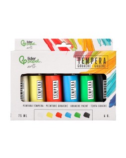 Tempera gouache liderpapel caja de 6 tubos de plastico de 75 ml colores surtidos