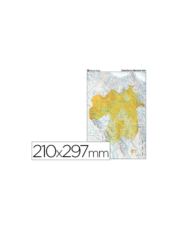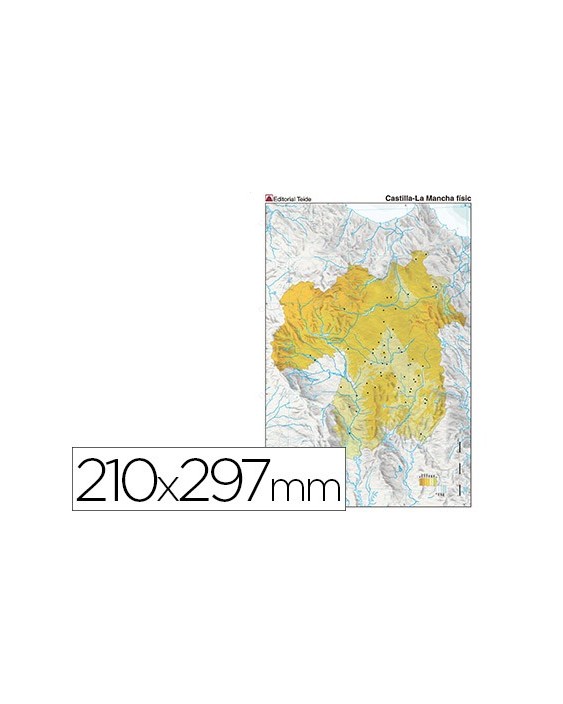 Mapa mudo color din a4 castilla-la mancha fisico